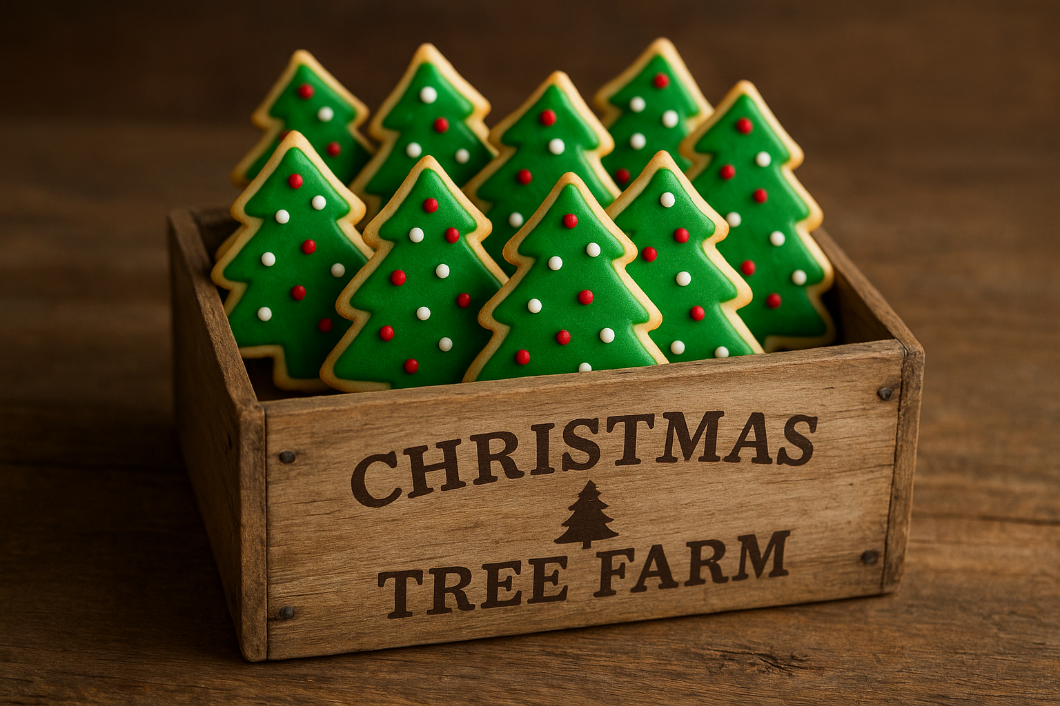 Unwrap the magic of the season with Timber & Tinsel, a charming collection of six hand-decorated Christmas tree cookies nestled in a rustic wooden crate. Each tree is uniquely adorned with snowy accents and festive flair, capturing the cozy spirit of winter wonderlands. Individually packaged for freshness and delight, these edible evergreens make the perfect gift or centerpiece for your holiday table. From frosted tips to golden trunks, every bite is a celebration of craftsmanship and cheer.